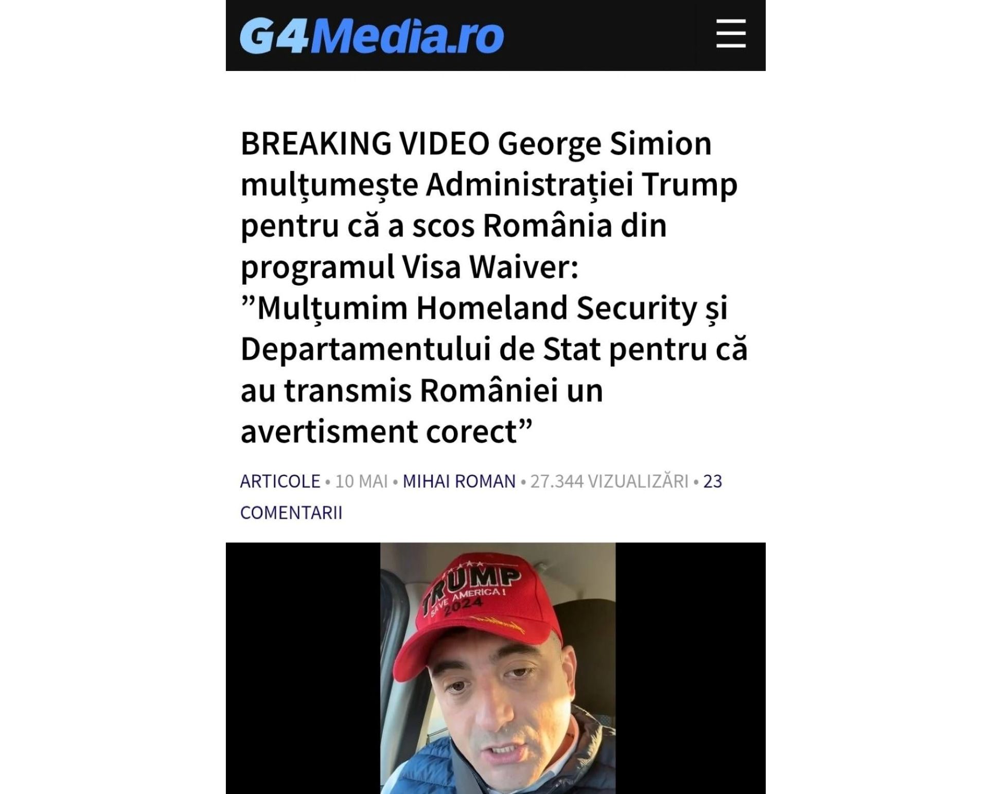 „Patriotul” Simion mulțumește administrației Trump că i-a pedepsit pe români refuzând să mai ridice vizele, deși toate procedurile erau îndeplinite. („Mulțumim Homeland Security și Departamentului de Stat că ne-au transmis un avertisment.”)